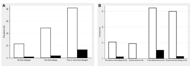 and food allergy with and without eczema among infants with both parents born in Australia (B).