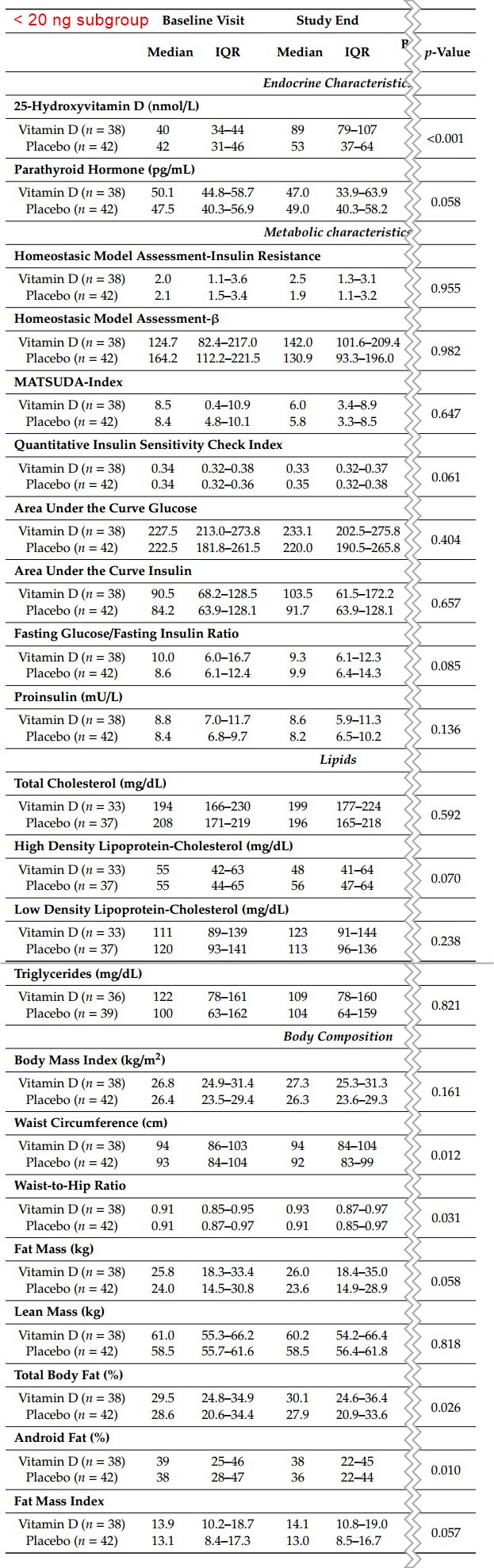 Effects of Vitamin D Supplementation on Body Composition and Metabolic Risk Factors in Men: A Randomized Controlled Trial