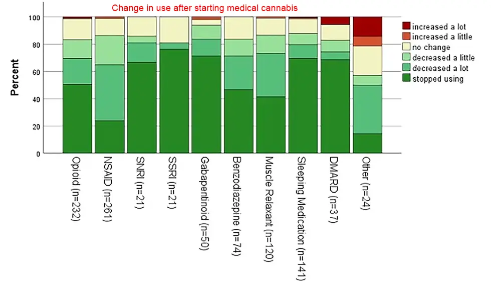 Participants who substituted medical cannabis reported significant improvements in symptoms such as pain, sleep, joint stiffness, muscle spasms, and inflammation, and in overall health, compared with those who did not substitute it for medications.