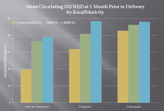 The new RCT data indicates that 4,000 IU/d vitamin D3 during pregnancy will "normalize" vitamin D Metabolism and improve birth outcomes including primary cesarean section and co-morbidities of pregnancy with no Risk of side effects.