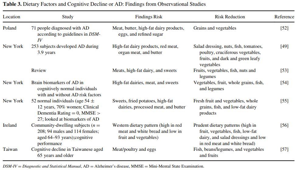 • The most important dietary link to AD appears to be meat consumption, with eggs and high-fat dairy also contributing.