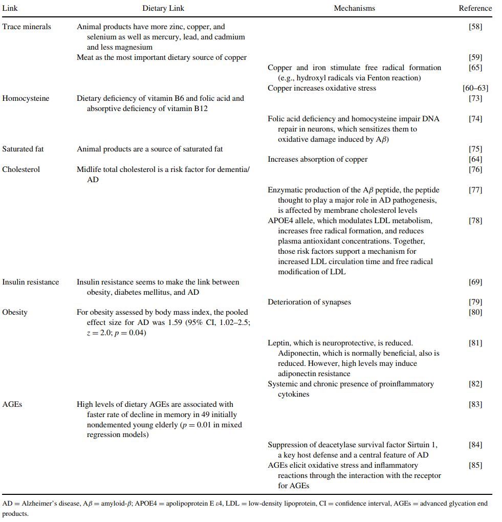 Table 4. Mechanisms to Explain Dietary Risk Factors for AD