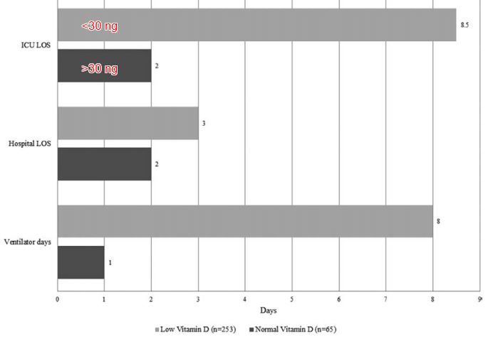 - Burns with low vitamin D associated with more days in ICU and hospital – Jan 2017