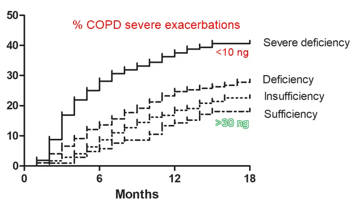 - COPD attack is 30 times more likely if low vitamin D