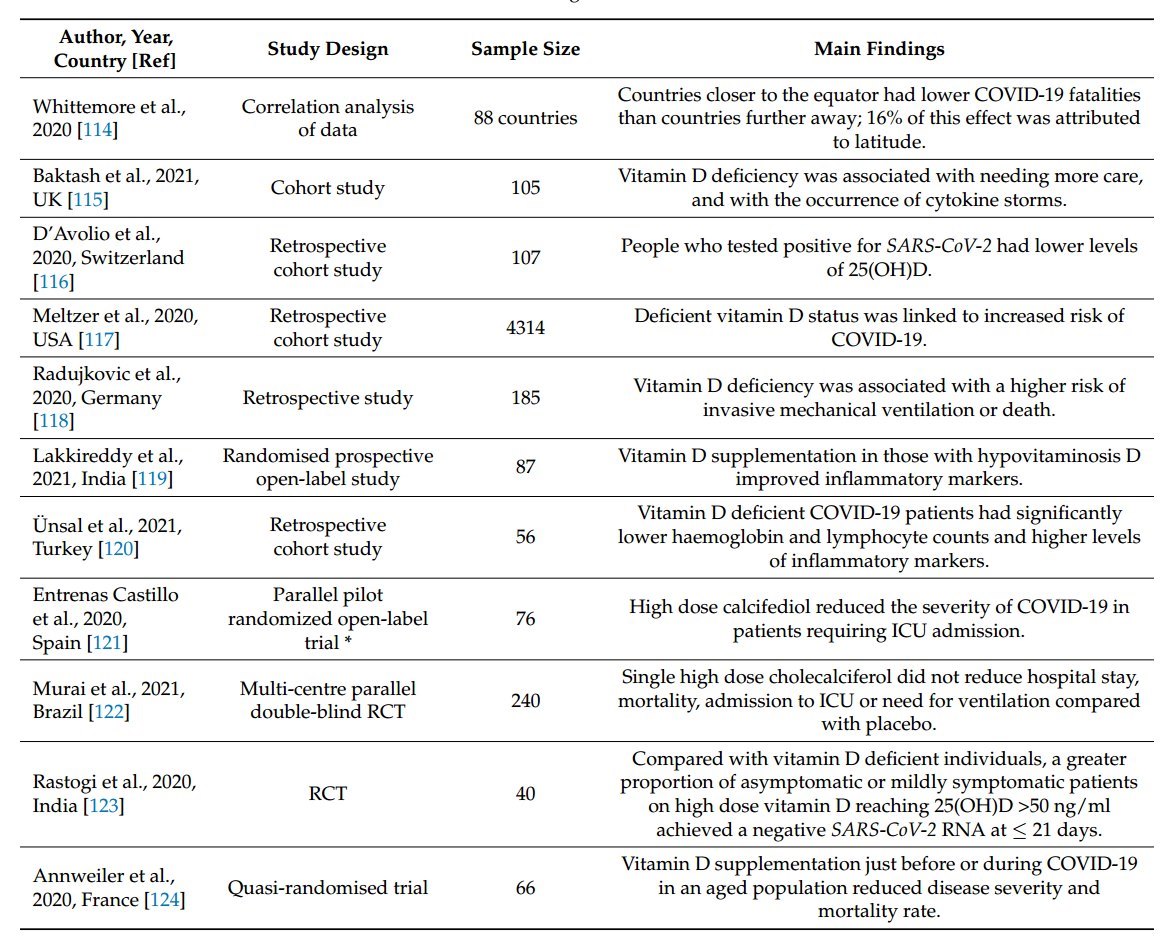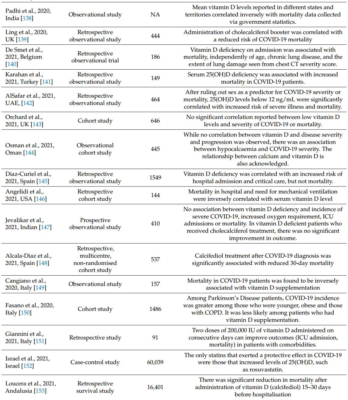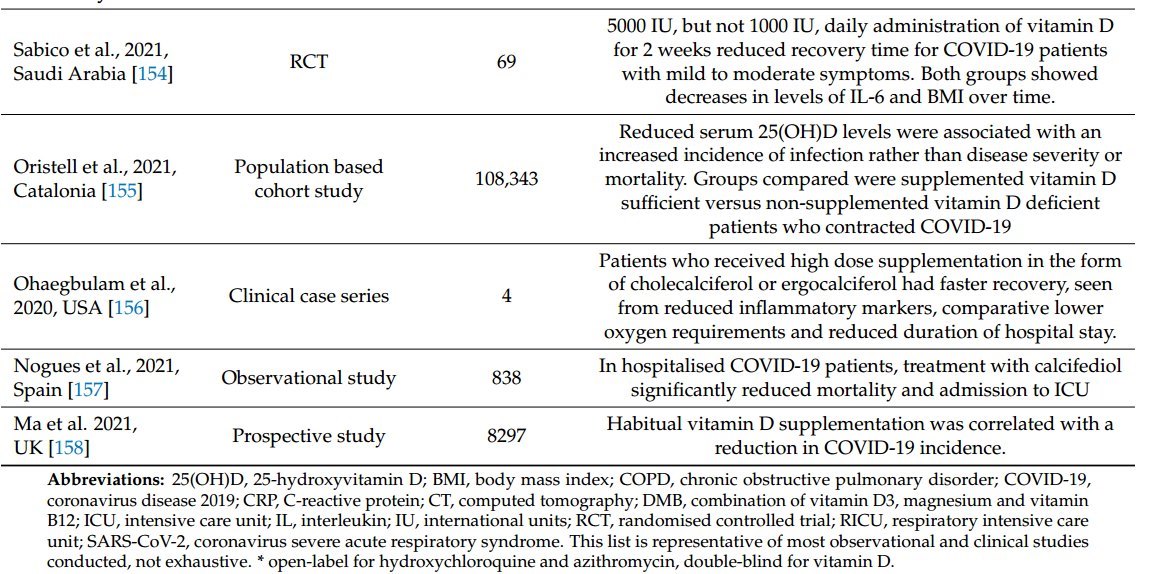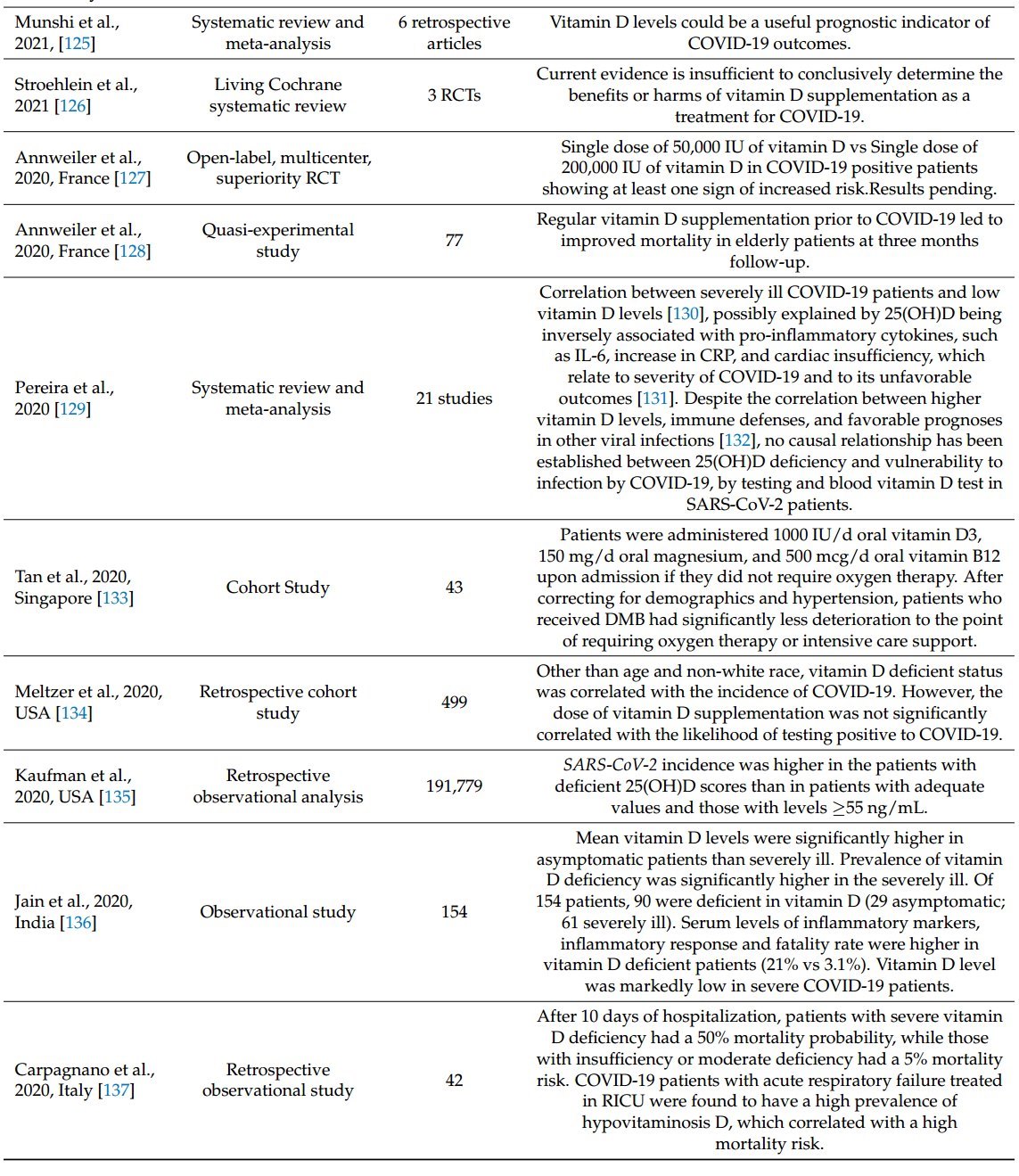 COVID-19 and Vitamin D (42 studies, consensus) – Oct 2021