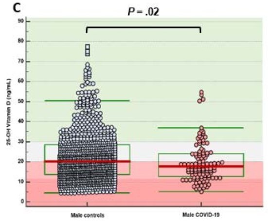 - COVID-19 mortality 2X higher if low Vitamin D (Mexican hospital, preprint) - March 2021