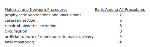 Six of the ten most common hospital procedures in 2009 were maternity-related