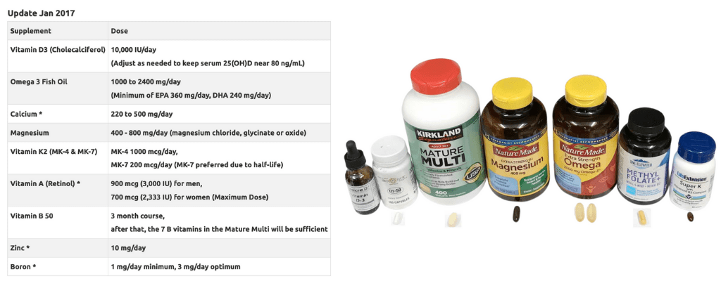 0:08:07.4 Craig: And so Pete that's probably a good time just to ask you what is the vitamin D regimen? We can bring a picture of it up on screen in terms of the five or six bottles that constitute the daily regimen and the chart people are gonna be very familiar with having visited the Wiki Link. We'll put that up on screen, as well. There you go.
