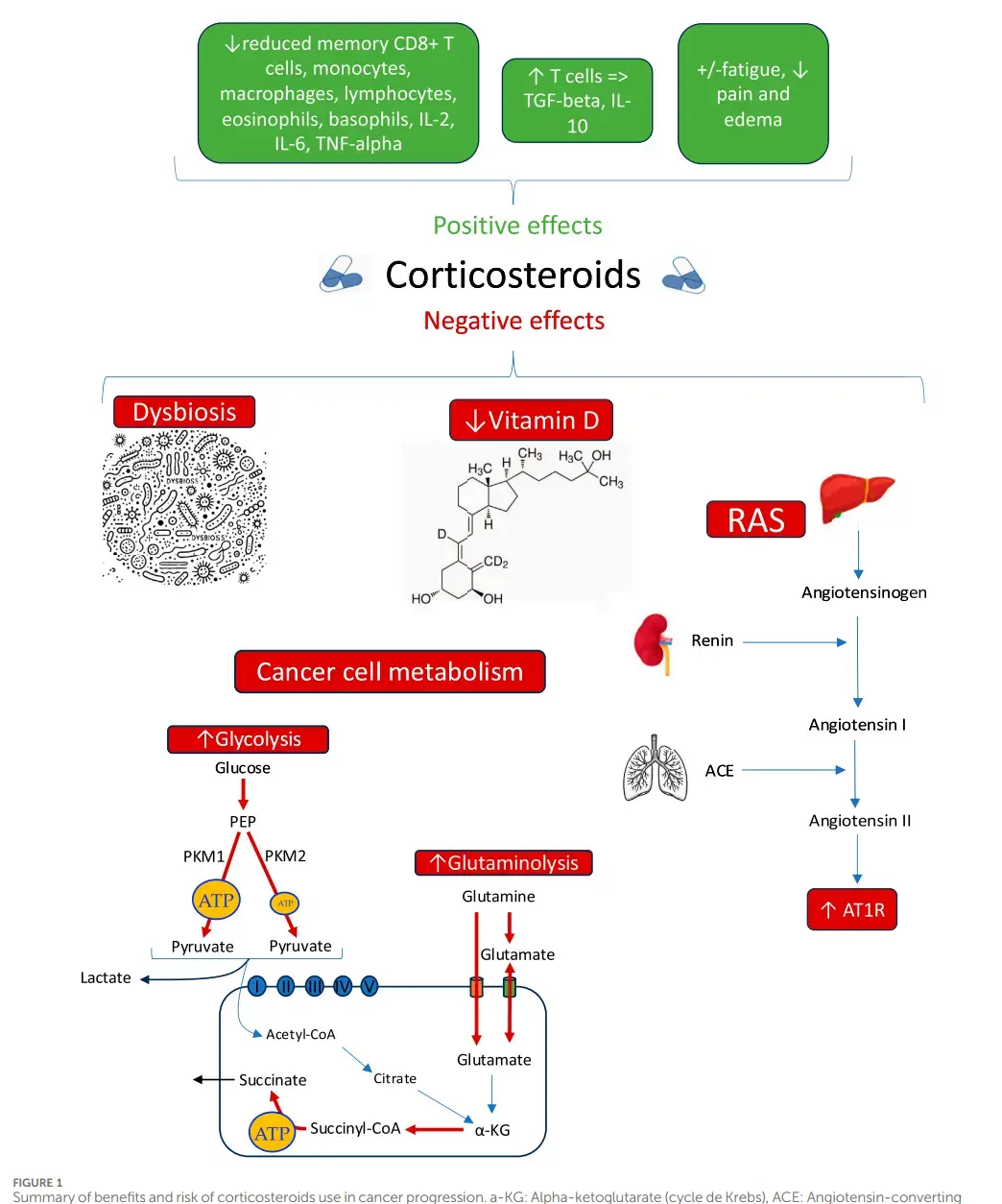 Corticosteroids (CSs), widely used in oncology for their anti-inflammatory and immunosuppressive properties, help manage cancer-related symptoms and side effects. However, their long-term use may negatively affect patient survival and exacerbate tumor progression.