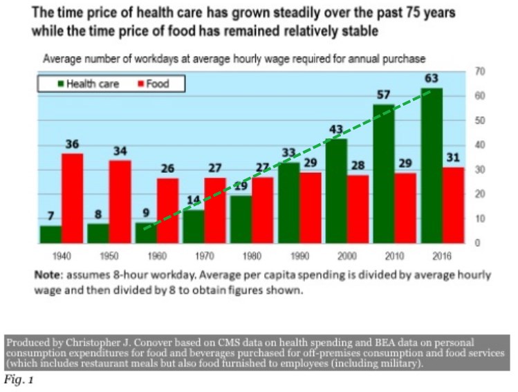 - "The average worker must work more than twice as long to cover healthcare as to cover food costs."