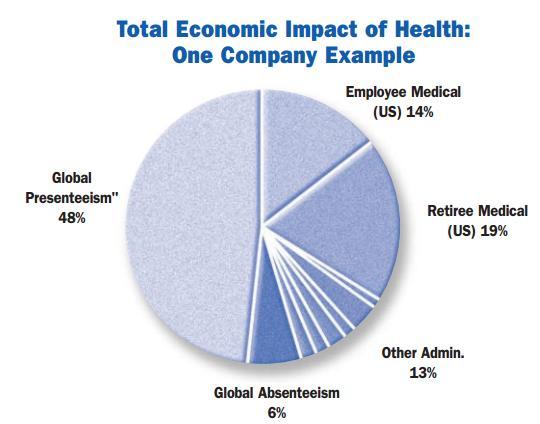 On average, every $1 of medical and pharmacy costs is matched to $2.3 of health-related productivity costs. - The True Cost of Poor Health Mayo Clinic PDF 2008