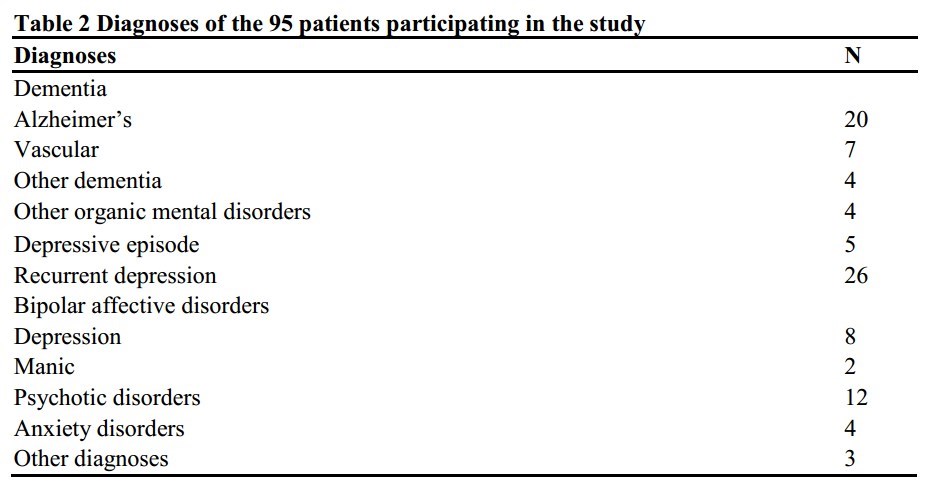 Previous studies have found an association between psychiatric disorders and vitamin D deficiency, but most studies have focused on depression. This study aimed to establish the prevalence of vitamin D deficiency in elderly patients with a wider range of psychiatric diagnoses.