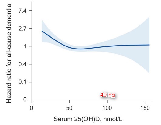 Serum 25-Hydroxyvitamin D Concentration and Risk of Dementia