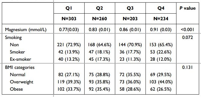 Conclusion: There was an inverse association between serum magnesium and fat mass, especially among those with an adequate sleep duration and without chronic conditions including diabetes, hypertension and depression.