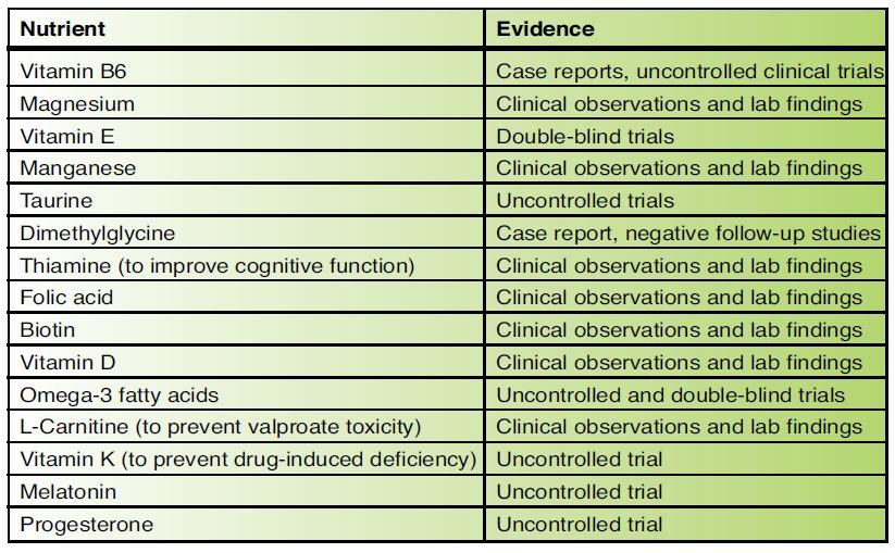 - Natural approaches to epilepsy PubMed March 2007 PDF is attached at the bottom of this page - a summary chart follows