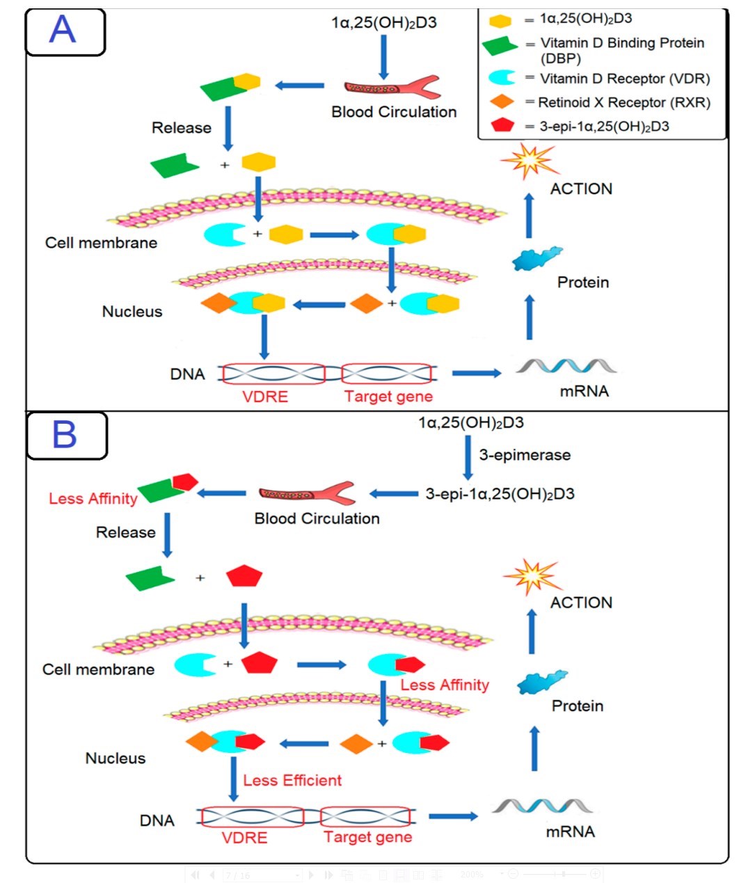 Vitamin D (A) and Epimer (B) both use Binding Protein and Receptor