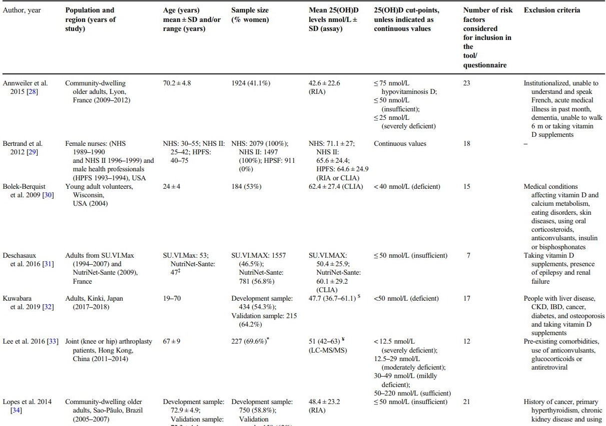 Prediction models and questionnaires developed to predict vitamin D status in adults: a systematic review