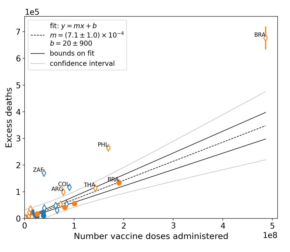 Likewise, it is unlikely that the transitions to regimes of high ACM, coincident with the rollout and sustained administration of COVID-19 vaccines, in all 17 Southern- Hemisphere and equatorial-latitude countries, could be due to any cause other than the vaccines.