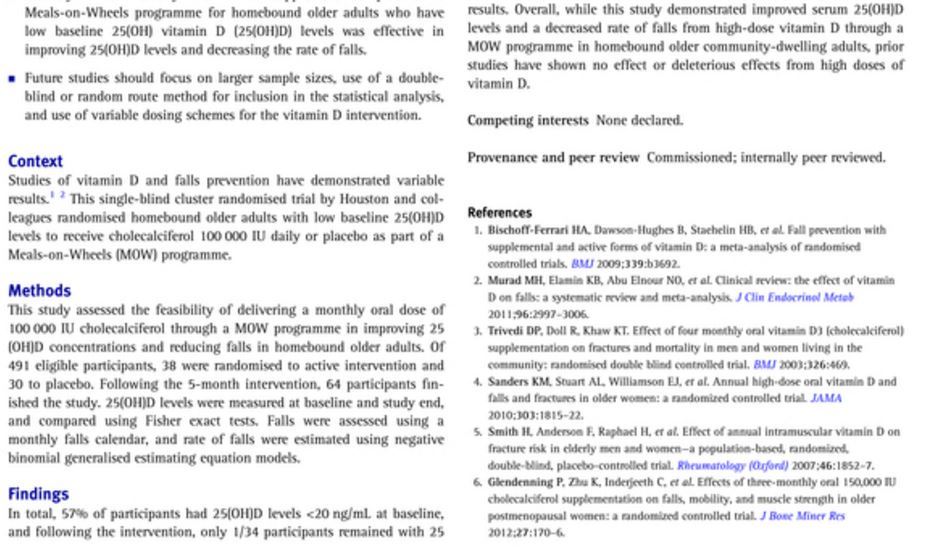 Falls cut in half by 100,000 IU vitamin D monthly - RCT 2016Printer Friendly Follow this page for updates13512 visitors, last modified 02 Aug, 2021, This page is in the following categories (# of items in each category)