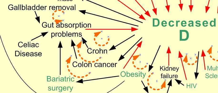 Overview Deficiency of vitamin D has a chart - the following is a portion of that chart - showing vicious cycles