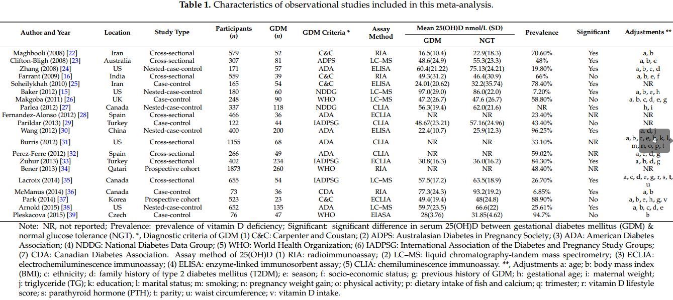 Vitamin D Deficiency Increases the Risk of Gestational Diabetes Mellitus: A Meta-Analysis of Observational Studies
