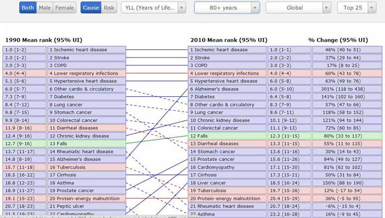 Years of Life Lost Cause Age 80 Globe