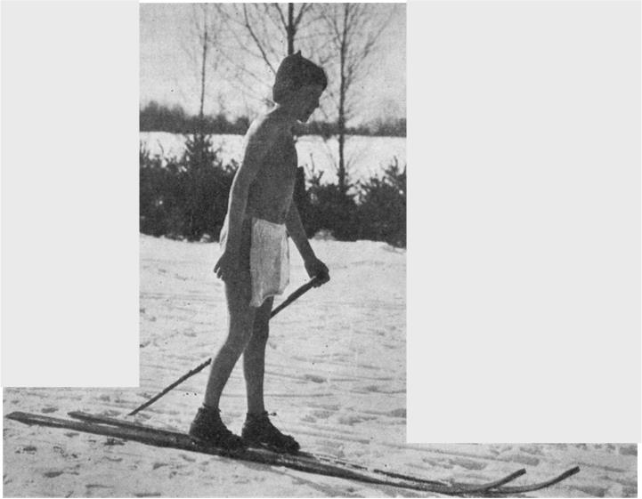 In summer the children play and frolic over the extensive hay fields and woodlands. In winter, with only the protection of a loin cloth, they ski, coast and toboggan on the snow covered farm hills—their delicate, sick bodies in the meantime being rebuilt and hardened by exposure to the direct sunlight.