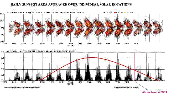 The 100 year sunspot cycle can be seen in this graph. The last minima was in 1906 and I am not convinced we have hit minima again yet;<o:p>