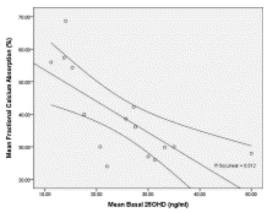 Analysis of published studies suggests that calcium absorption in inversely correlated with serum 25OHD levels and calcium intake.