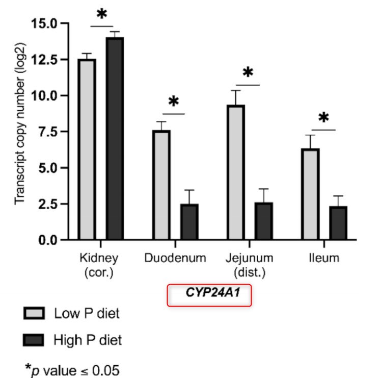 Increased Phosphorus increases Vitamin D getting to cells (CYP24A1, pigs) - Aug 2022