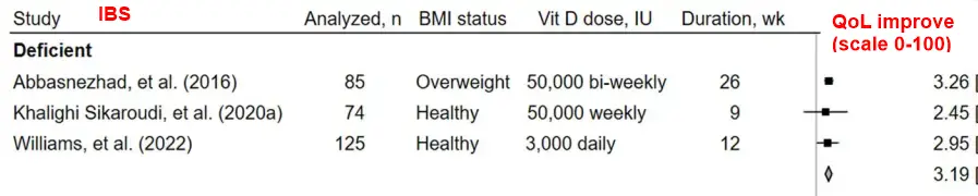 IBS quality of life improved somewhat when add some standard vitamin D for a short time - meta-analysis Sept 2024