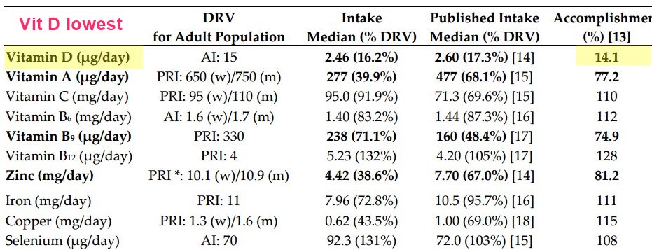 People in Spain are most deficient in Vitamin D (ignores D from the sun)
