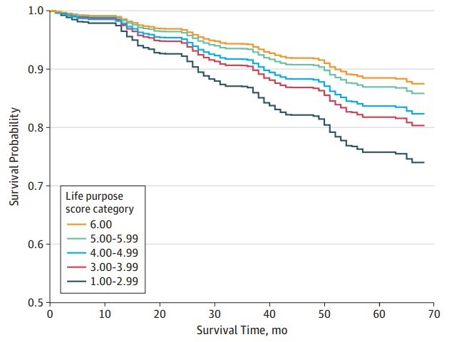 Those with a strong life purpose were 2.4 X less likely to die in the following 70 months