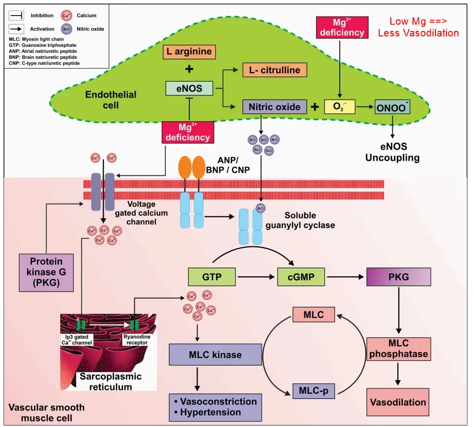 Mg helps regulate blood pressure and heart rhythm by acting as a natural calcium channel blocker. Adequate Mg levels are associated with reduced risk of hypertension and cardiovascular diseases.