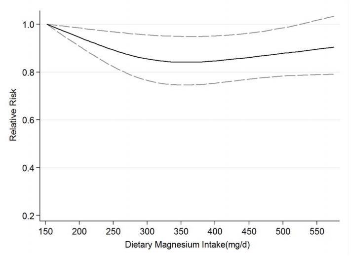 CONCLUSIONS SIGNIFICANCE: There is a statistically significant nonlinear inverse association between dietary magnesium intake and total CVD events risk.