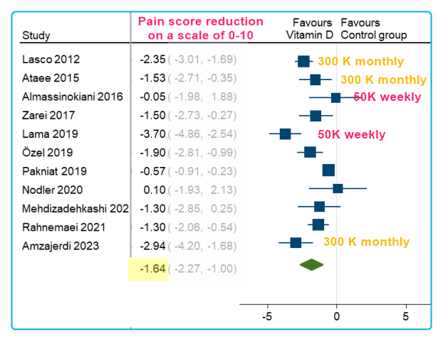 Pain not reduced by 60,000 IU monthly vitamin D (need 50,000 IU weekly) – RCT Aug 2023 |