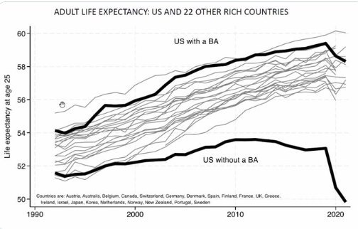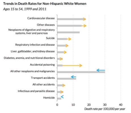- "Deaths of despair”: suicide, opioid overdoses, and alcohol problems