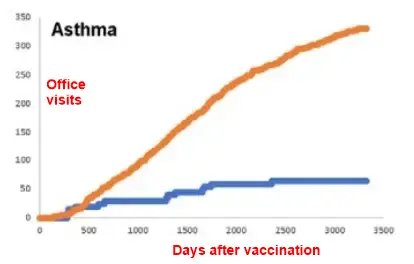 Asthma was one of the 12 health problems increased after vaccinations (before COVID)