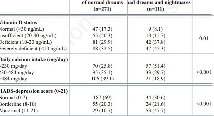 - Nightmares associated with low Vitamin D and low Calcium – Aug 2021