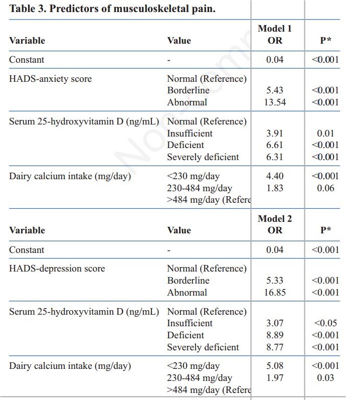 Nightmares and bad dreams among individuals with musculoskeletal pain: a link to vitamin D and calcium