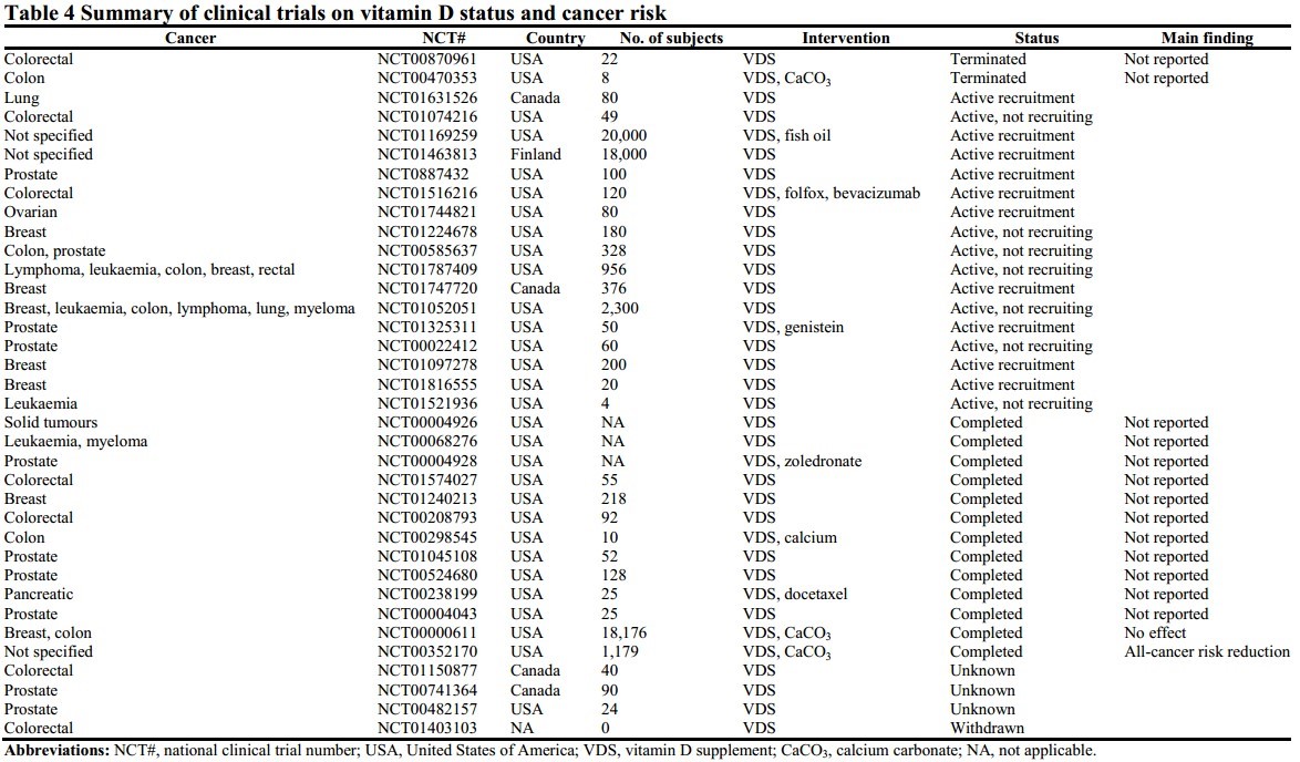 - (3) 21 meta-analyses on circulating vitamin D levels and cancer risk were identified with different results for different types of cancer.