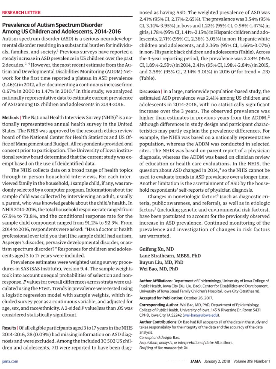 - Is it Time to Give Up on a Single Diagnostic Label for Autism? Scientific American May 2018