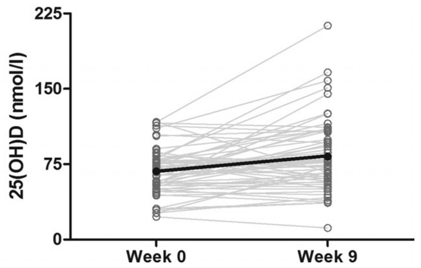 Conclusions: To our knowledge, this is the first report of increased circulating 25-hydroxyvitamin D in response to oral probiotic supplementation.