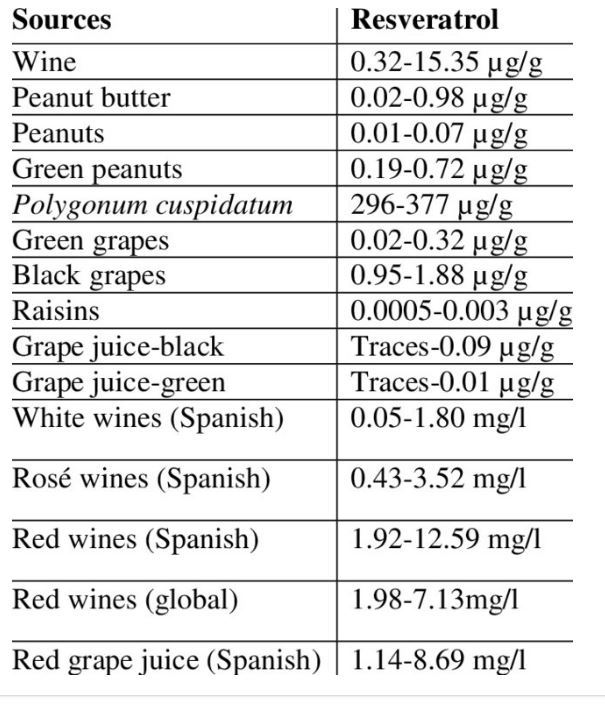 - Resveratrol in Food ResearchGate 2014
