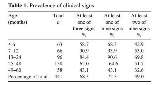 Table 1. Prevalence of clinical signs
