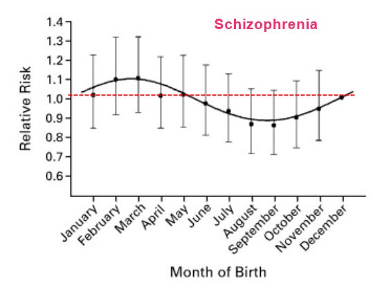 - Schizophrenia increased 40 percent for Spring births after Danes stopped vitamin D fortification – April 2014