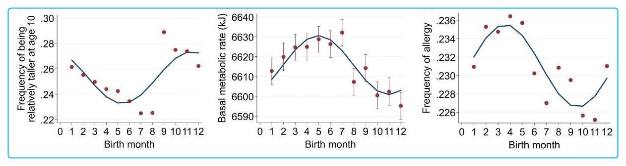 - (a) season of birth is not a good indicator of early-life conditions;