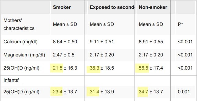 - Lower vitamin D levels in mother and neaonate if 2nd-hand smoke - Aug 2022