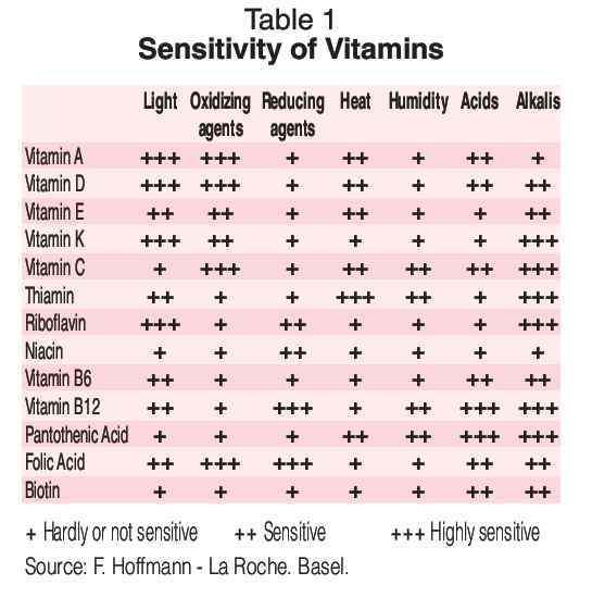 One publication, from USAID, had the following graph of stability of many different vitamins