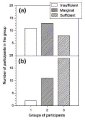 sufficient (75–150 nmol/L) levels of 25(OH)D before (a) and after (b) all 20 sunbed exposures.